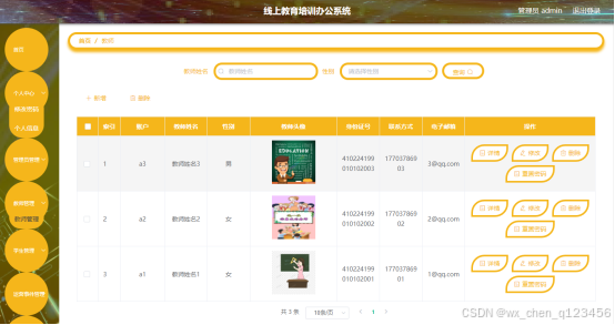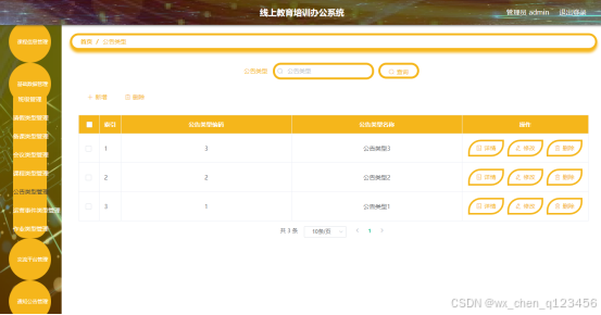 当前的网络技术,软件技术等都具备成熟的理论基础,市场上也出现各种技术开发的软件,这些软件都被用于各个领域,包括生活和工作的领域。随着电脑和笔记本的广泛运用,以及各种计算机硬件的完善和升级,市面上的电脑和笔记本的性能都得到提升,可以支持的软件也逐渐增多,因此,在计算机上安装软件来发挥其高效地信息处理的作用,则很受人们的青睐。对于线上教育培训办公系统信息来讲,通过手工形式处理,在面对庞大的信息数量时,就显得不适宜了,首先需要花费的时间比较多,其次数据出错率比较高,而且对错误的数据进行更改也比较困难,最后,检索数据费事费力。因此,为了解决上述问题,有必要建立线上教育培训办公系统,来规范线上教育培训办公系统信息管理流程,让管理工作可以系统化和程序化,同时,线上教育培训办公系统的有效运用可以帮助管理人员准确快速地处理信息。