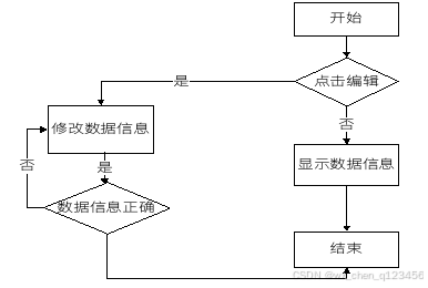 很多时候,面对系统中的大量数据,难免会发现一些错误,因此需要及时纠正错误,本系统也提供数据后期的修改功能,其流程见下图。但是更新的数据也需要通过数据有效性检验。能够最终写入数据库则说明修改的数据是符合要求的。
