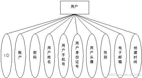 (4)用户包括的属性有用户姓名,用户头像,用户手机号,性别等。其属性图如下。