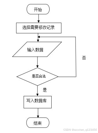 数据的存储并不是一成不变的,当需要对已经存在的数据进行改变的时候,同样也遵循着操作流程,想更改数据首先要确定更改之前的数据是什么,然后输入新的数据是否合法,都要符合流程,只有合法数据才可以被更新到数据库里存储。具体步骤参考下图。