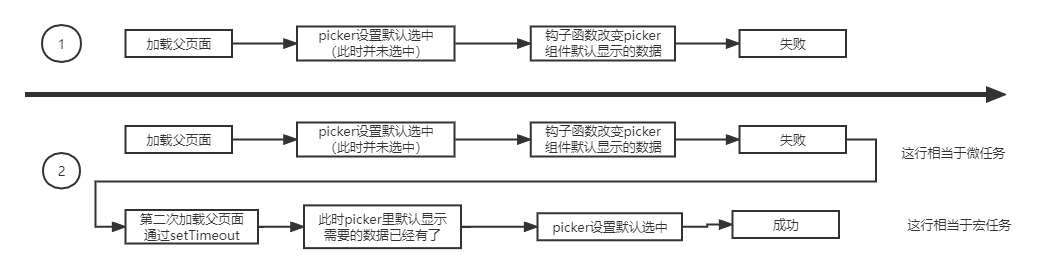 微任务:picker里边原生的设置默认数据应该是微任务