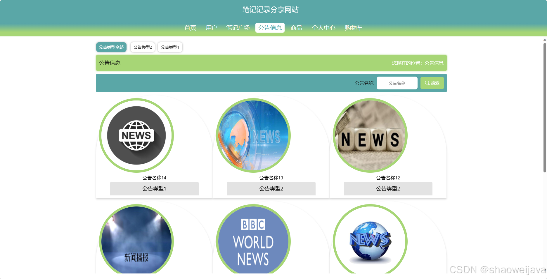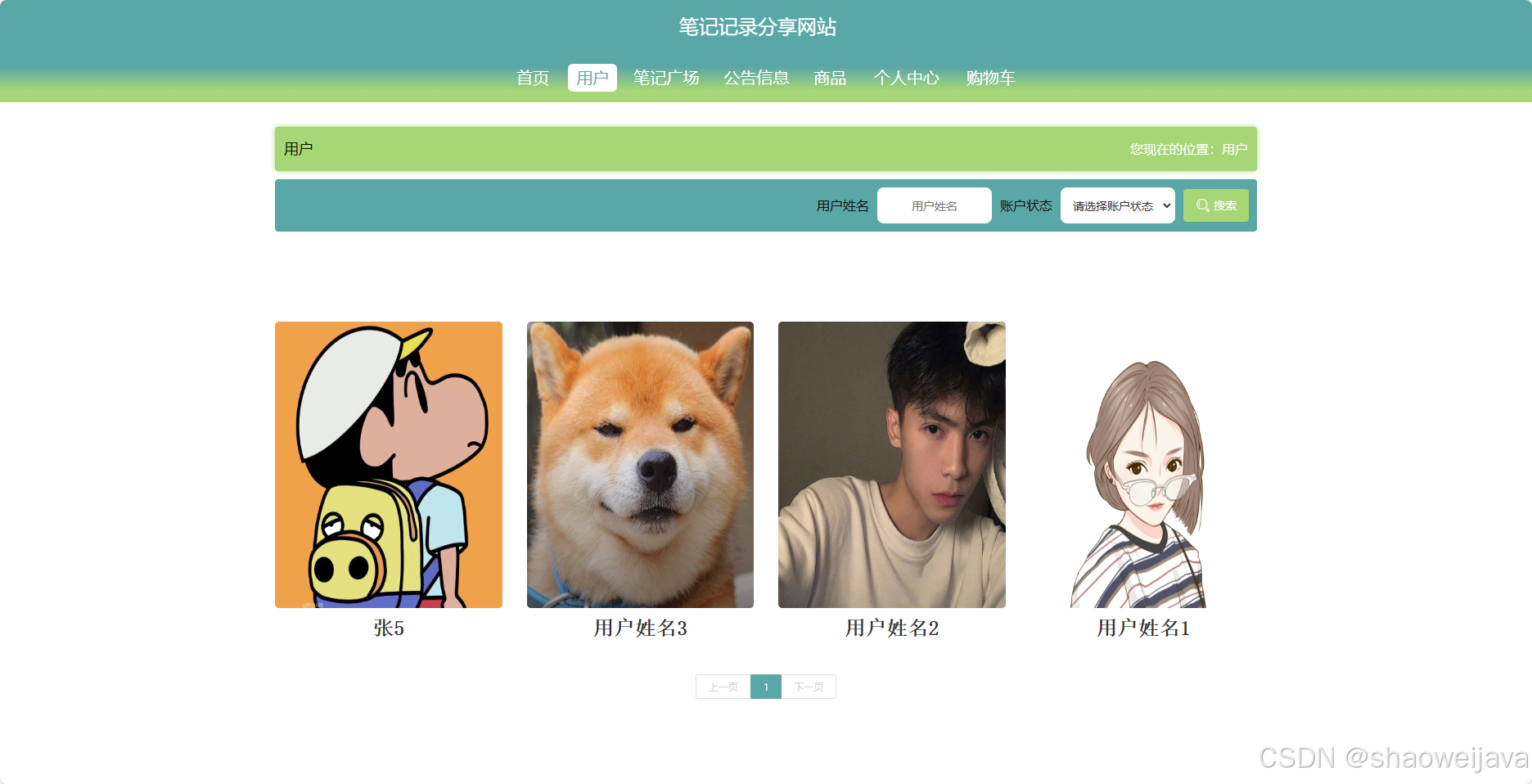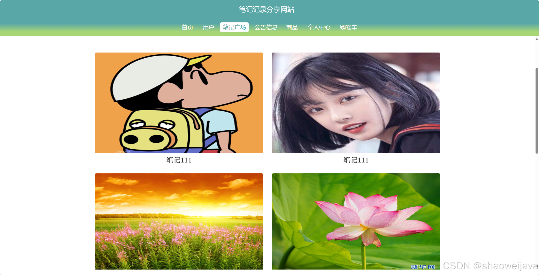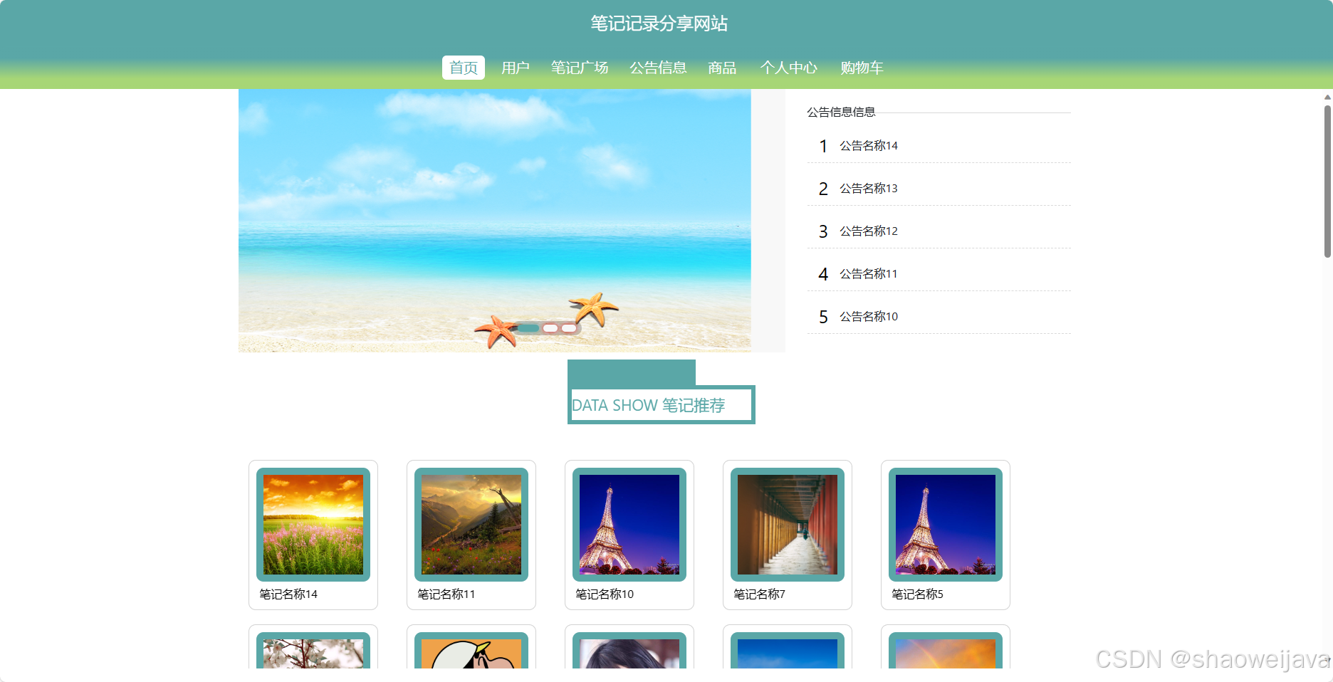 - 首页:展示网站的基本信息、热门笔记、公告等内容。