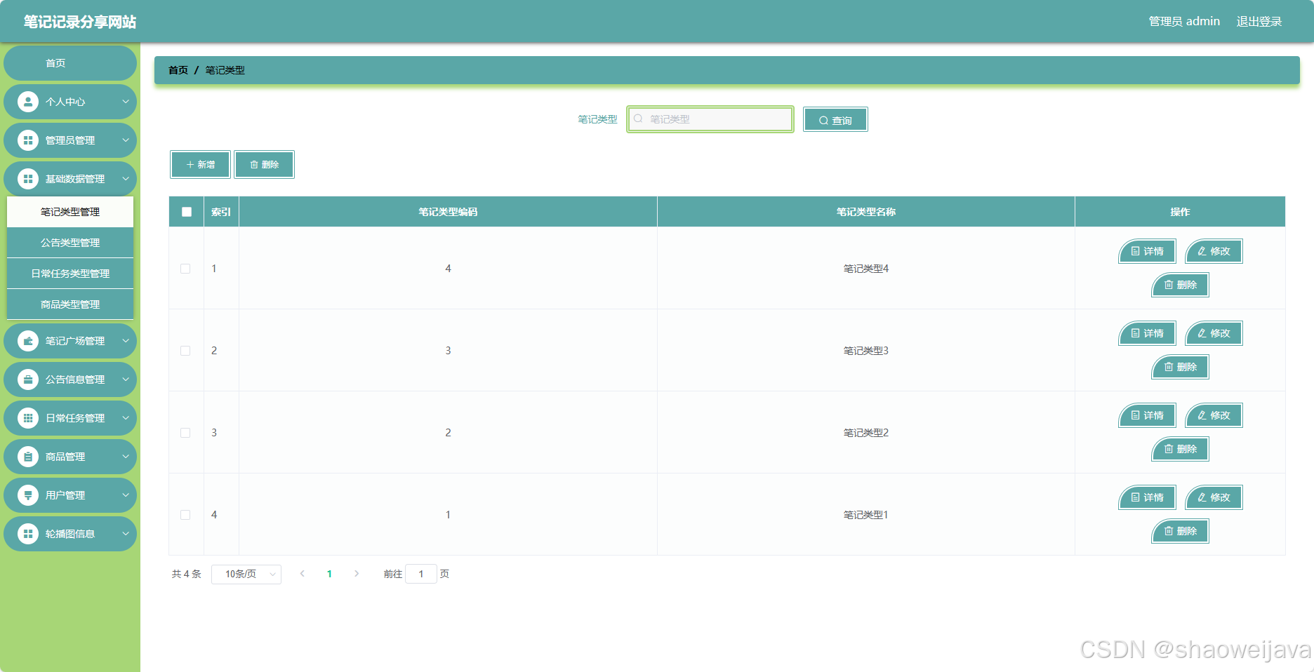 376.基于SpringBoot的笔记记录分享网站,系统包含两种角色:管理员、用户,系统分为前台和后台两大模块,主要功能如下。