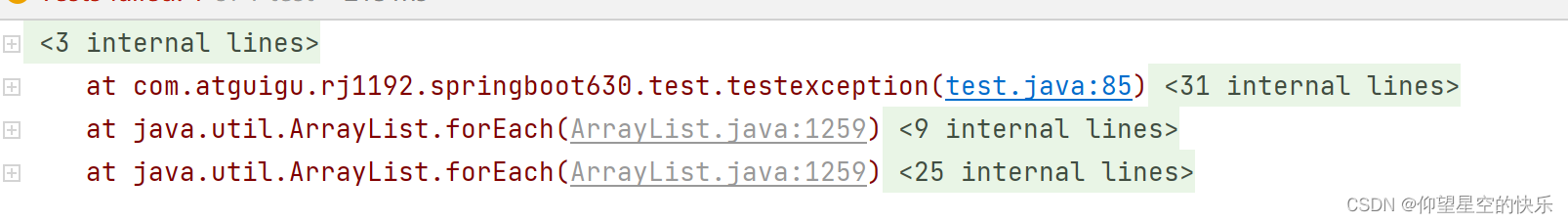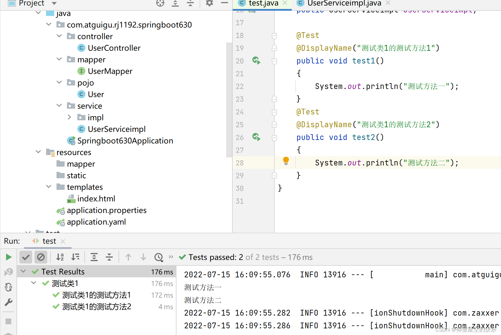 本文介绍了Spring Boot中测试相关的内容,包括@Test注解在JUnit5中的使用,@Transactional事务管理,以及测试生命周期方法@BeforeAll、@BeforeEach、@AfterEach、@AfterAll。还展示了如何使用@Disabled禁用测试方法,@Timeout限制测试执行时间,以及各种断言方法如assertEquals、assertArrayEquals和assertAll。此外,还提到了快速失败断言@fail以及异常断言assertThrows。