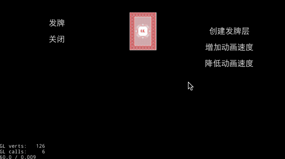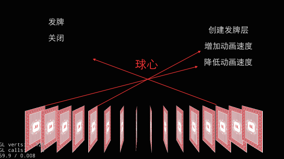 所谓的旋转90°也就是垂直球面指向球心。“上有政策,下有对策”,我这里弄了一个勉强的解决方案,也就是当动画运行到上图停止时,隐藏扑克牌背面,让事先隐藏(先用orbitcamera旋转90°再隐藏)的扑克牌正面图片显示出来,然后向相反的方向调用orbitcamera旋转90°。看效果图:
