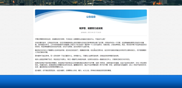 在公告信息页面的输入栏中输入标题进行查询,可以查看公告详细信息;公告信息页面如图5-4所示:
