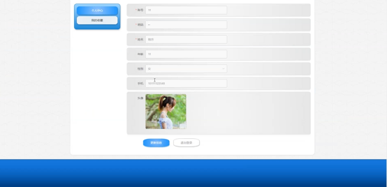 在个人中心页面输入个人信息可以进行更新信息与退出登录操作,还可以对我的订单、我的地址和我的收藏进行操作;如图5-5所示: