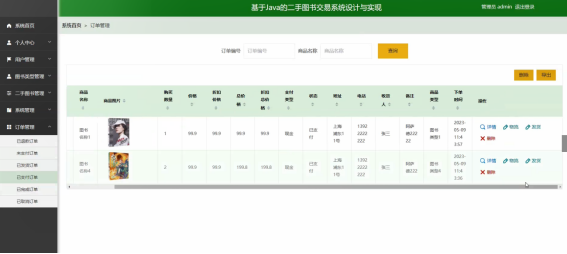 图书管理:管理员可以对二手图书进行分类管理,包括添加、删除和修改图书信息。