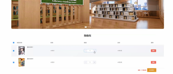 购物车管理:用户可以将图书加入购物车,并进行数量调整、删除或结算。