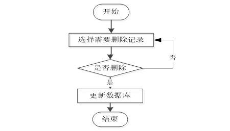 最后为删除信息页面。进入该页面后,用户可以对所要删除的信息进行选择,选择好删除的内容后,会有一个“是否确认删除”的提示框,操作者可以根据自己的意愿来选择“是”或“否”。完成上述操作,系统会自动的对删除的内容进行判断,如果符合删除要求则会成功删除数据记录,并且更新数据库的内容信息;如果删除的数据记录不符合要求,则会有一个“删除失败”的提示框,操作人员需要根据提示来进行修改,修改完成后重新删除知道删除成功。删除信息流程图如图3-3所示:
