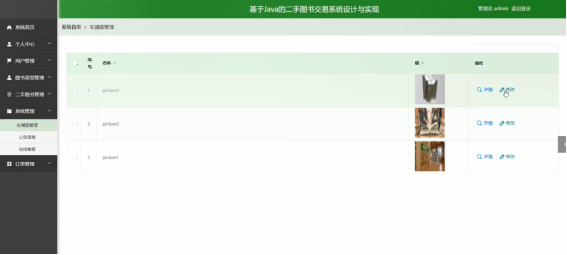 系统设置:管理员可以对系统的一些基础配置进行修改,如轮播图管理等。