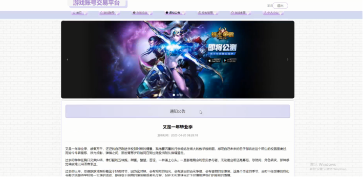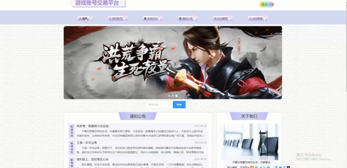 首页可视化:轮播公告、热门游戏、推荐账号、限时折扣。