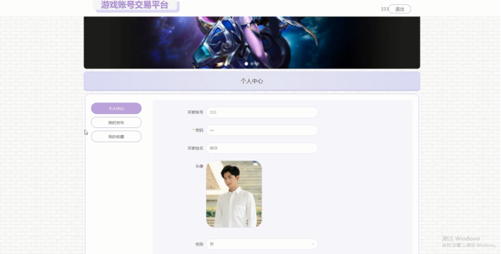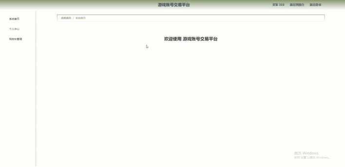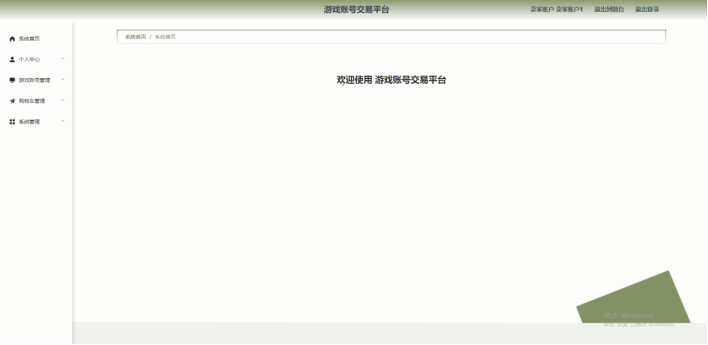 卖家账户进入系统后台,可以对个人中心、游戏账号管理、购物车管理、系统管理等功能进行操作。卖家账户主界面如图5-12所示: