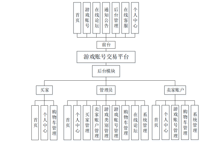 管理员进入主页面,主要功能包括对个人中心、买家管理、卖家账户管理、游戏类别管理、游戏账号管理、购物车管理、在线论坛、系统管理等进行操作。管理员主界面如图5-6所示: