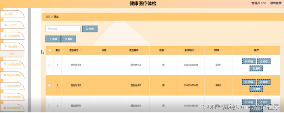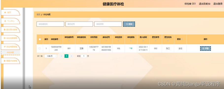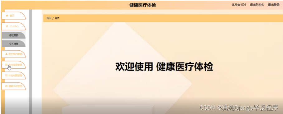 本文介绍了一个基于Django的健康医疗体检系统,涵盖前端首页、管理员和体检者功能模块。系统采用Python、Django、Vue等技术,支持用户注册、登录、医生预约、体检信息管理等功能,并提供源码和远程部署指导。