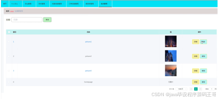 系统管理,在轮播图管理页面可以对索引、名称、值等内容进行详情、删除等操作,如图4-13所示。