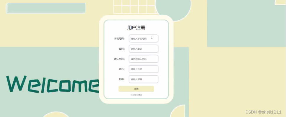 用户注册,用户通过输入手机号码、密码、姓名、邮箱等内容进行注册,如图5-2所示。