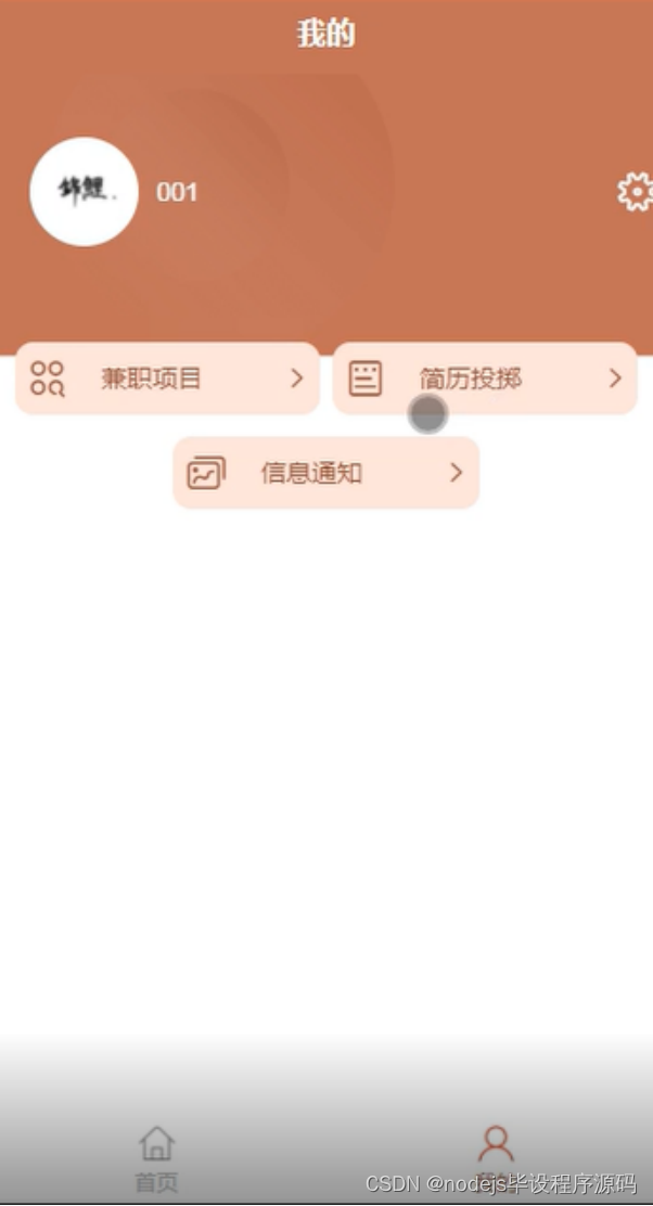 我的,在我的页面可以查看兼职项目、简历投掷、信息通知等信息,如图5-6所示。