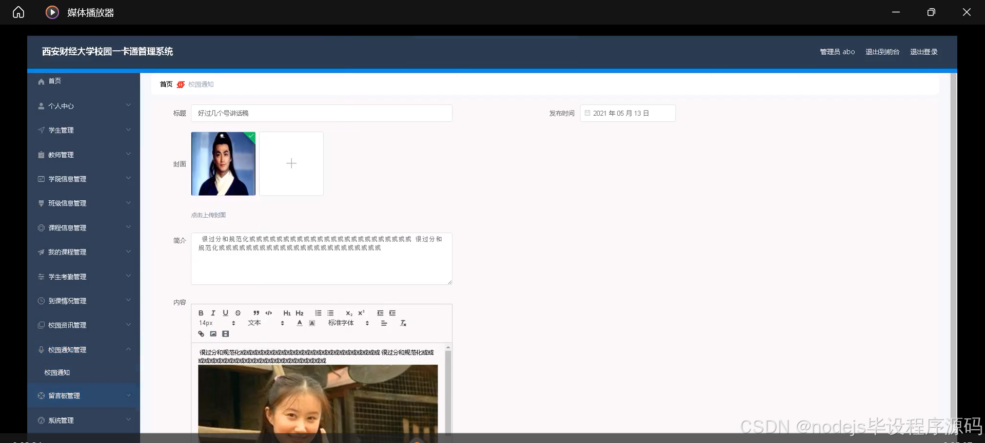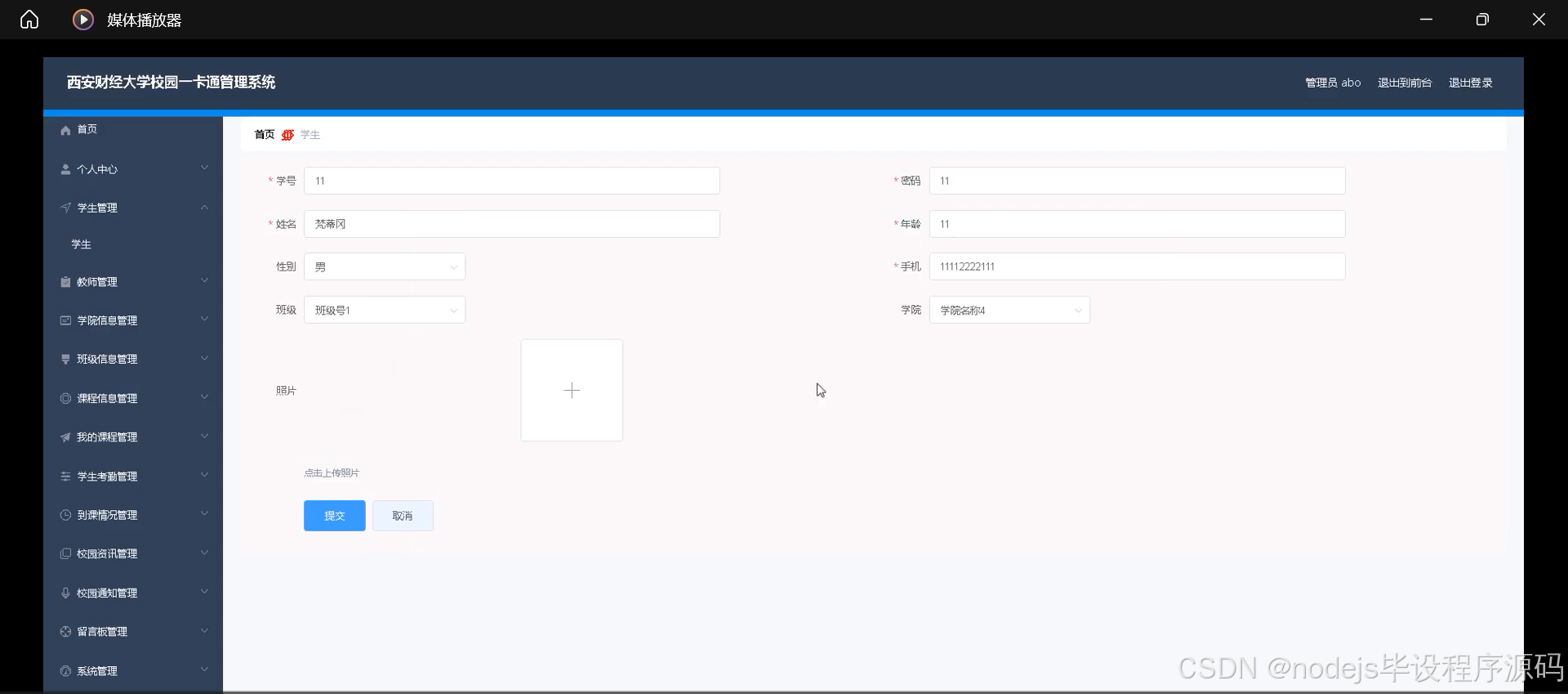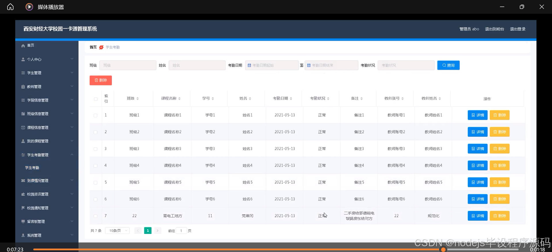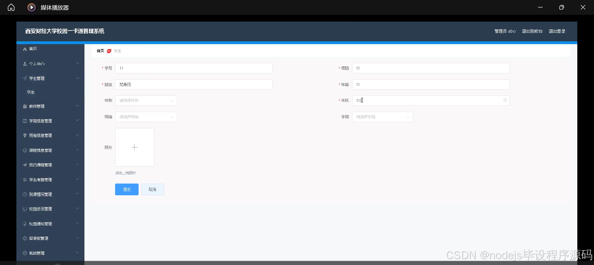 本研究内容将围绕SSM西安财经大学校园一卡通管理系统的设计展开,具体包括:学生信息管理模块,记录学生的基本信息、学籍信息等;教师信息管理模块,记录教师的基本信息、教学情况等;班级信息管理模块,记录班级的基本信息、成员名单等;课程信息管理模块,发布课程的基本信息、教学计划等;我的课程模块,展示学生所选课程及课程详情;学生考勤模块,记录学生的到课情况、请假情况等;校园资讯模块,发布校园新闻、活动信息等;校园通知模块,发布学校的各类通知公告;学院信息管理模块,展示各学院的基本信息、教学活动等。通过这些功能模块的整合与优化,设计一个符合西安财经大学校园管理需求的SSM校园一卡通管理系统。