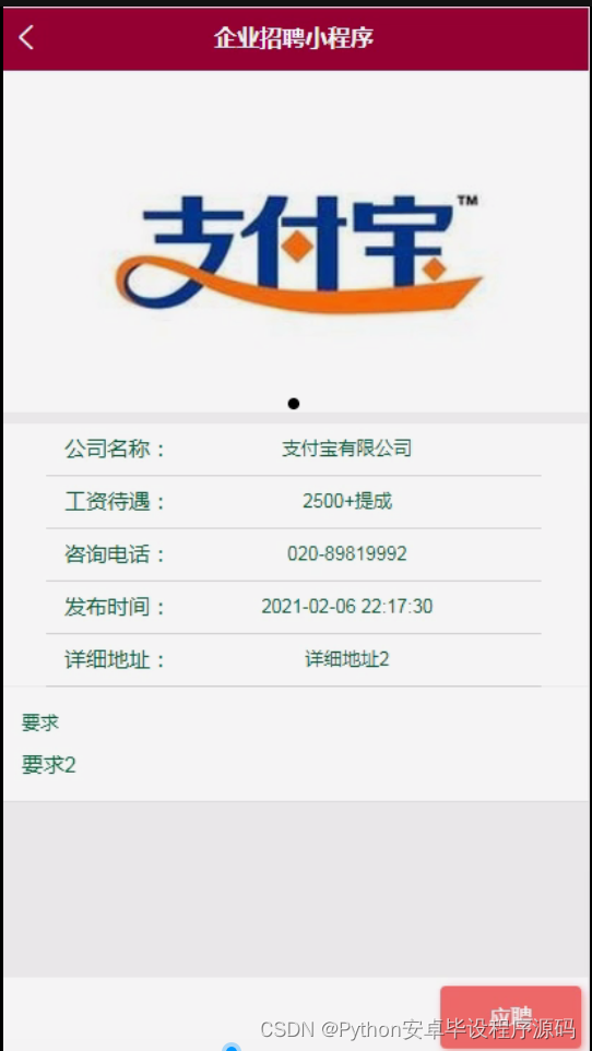 [附源码]计算机毕业设计Python+uniapp企业招聘小程序4k725(程序+lw+远程部署)
