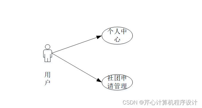 用户登录之后,进入系统,可以查看到个人中心、社团申请管理等。用户用例图如图3-1所示: