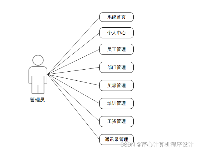 管理员进入系统主页面,主要功能包括对系统首页、个人中心、员工管理、部门管理、奖惩管理、培训管理、工资管理、通讯录管理等进行操作。管理员主页面如图5-2所示: