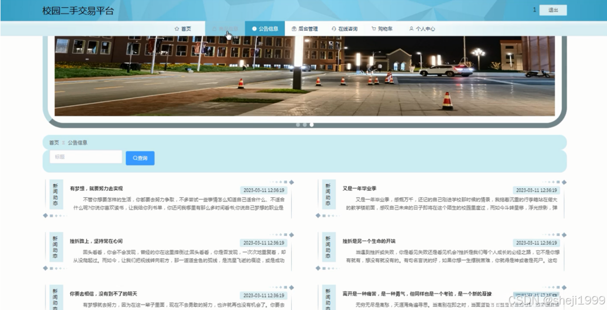 在公告信息页面的输入标题进行查询公告详细信息;公告信息页面如图5-4所示:
