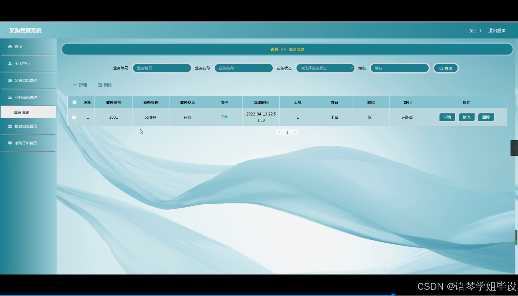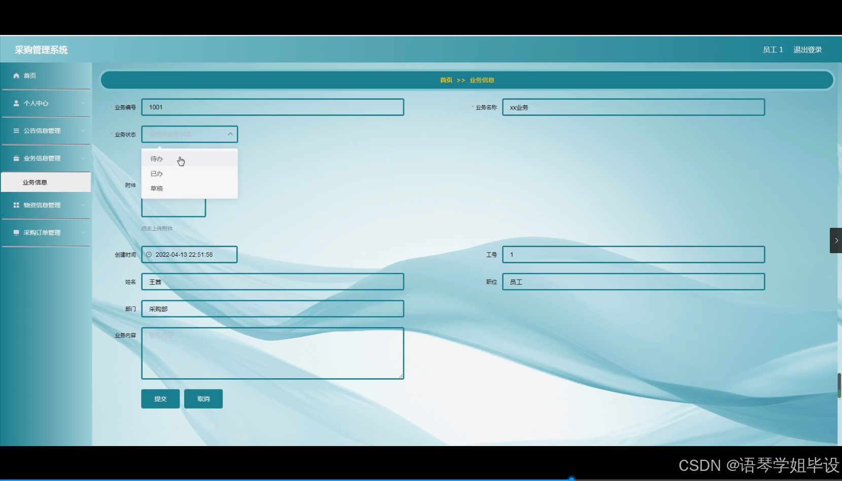 - 功能分析法:针对采购管理系统中的员工、公告信息、业务信息等各个功能模块进行详细分析,明确各功能的需求、作用以及相互关系,从而构建出科学合理的系统框架。