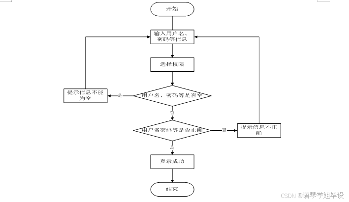 登录流程实现了管理员和学生的登录,在登录页面需要管理员和学生填写自己的信息,前端页面会将信息传递给后端接口,然后查询数据库确定该身份有效后登录成功,否则此用户登录失败,需要重新填写信息,进行再次验证,如图3-2所示。