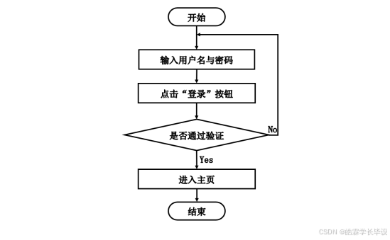 在登录流程中,学生首先在Vue前端界面输入账号和密码。这些信息通过HTTP请求发送到Java后端。后端接收请求,通过与MySQL数据库交互验证用户凭证。如果认证成功,后端会返回给前端,允许用户访问系统。这个过程涵盖了从用户输入到系统验证和响应的全过程。如图5-3所示: