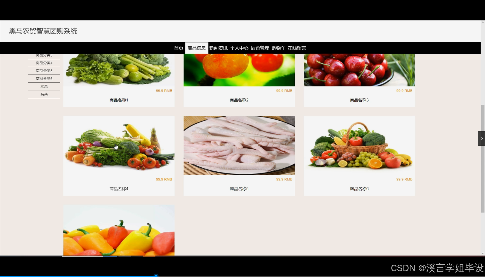 黑马农贸智慧团购系统主要围绕用户、商品分类、商品信息等系统功能展开研究。