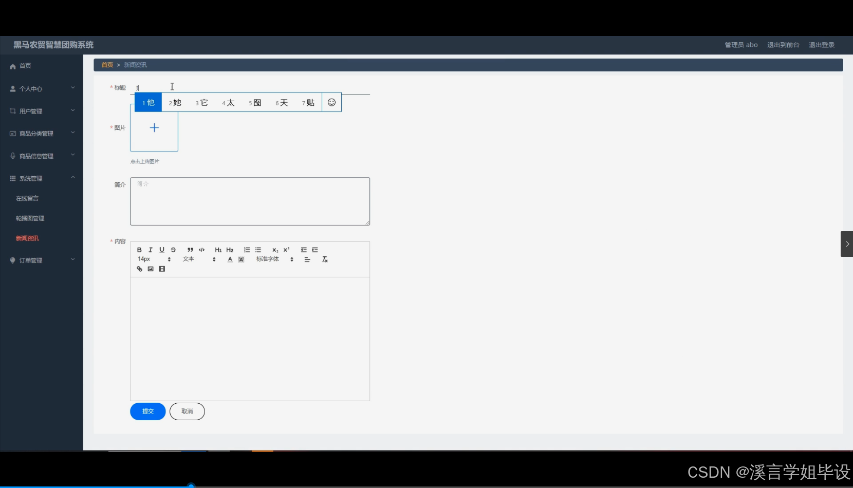 - 系统功能优化问题:针对黑马农贸智慧团购系统,优化用户功能,使操作更加便捷;完善商品分类体系,提高商品查找效率;确保商品信息的准确与及时更新。