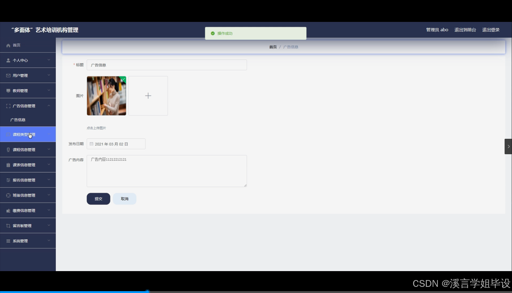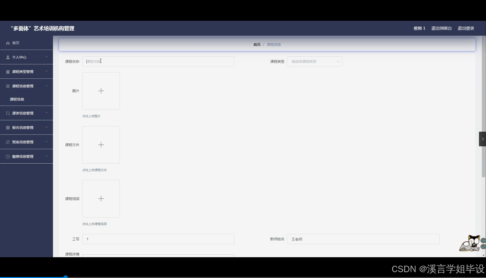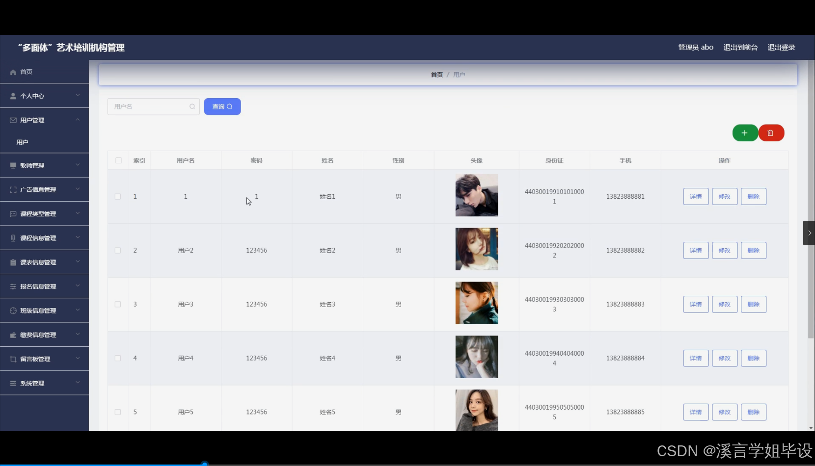 “多面体”艺术培训机构管理涉及多个方面的系统功能。