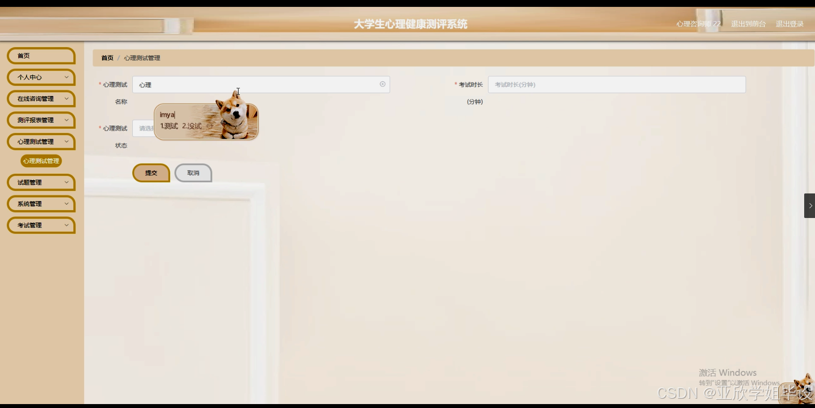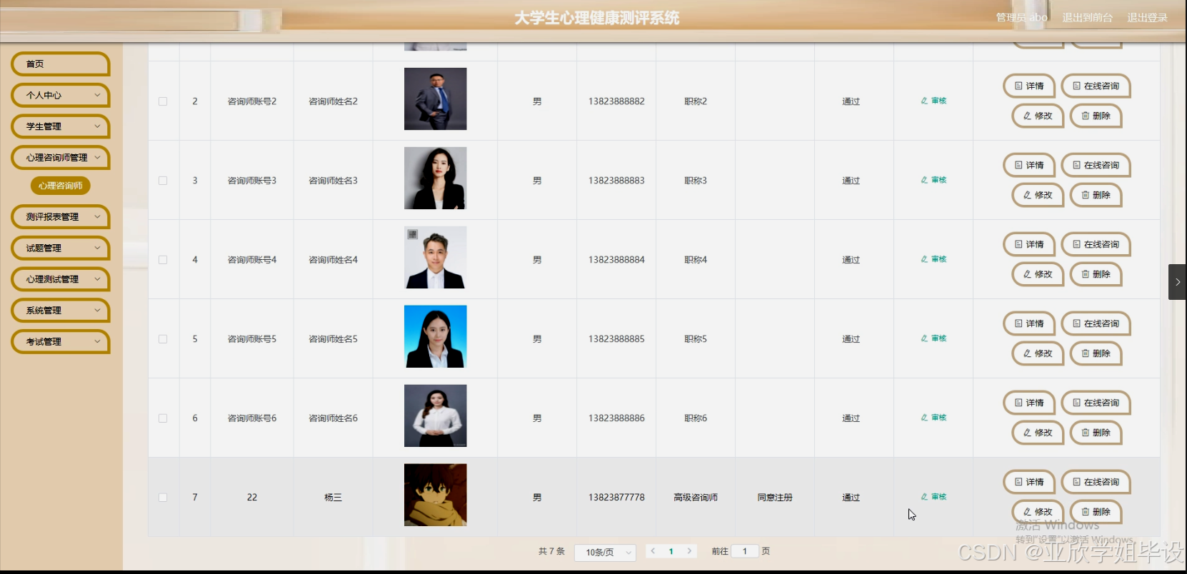 - 系统交互设计:注重系统的交互性设计,包括界面的友好性、操作的便捷性等。研究如何通过合理的界面布局、清晰的操作流程,提高用户体验,使得大学生和心理咨询师都能够轻松地使用系统。