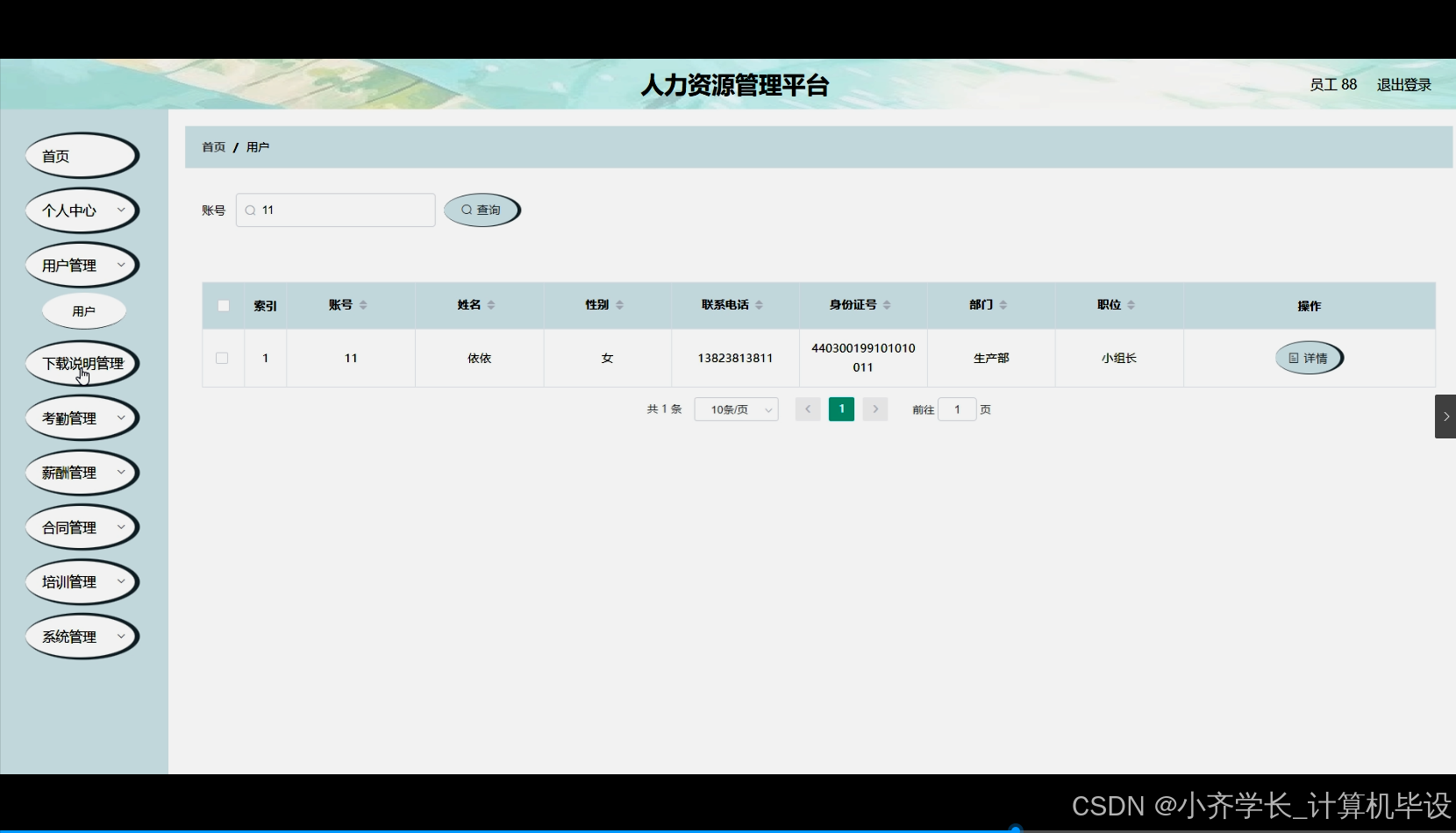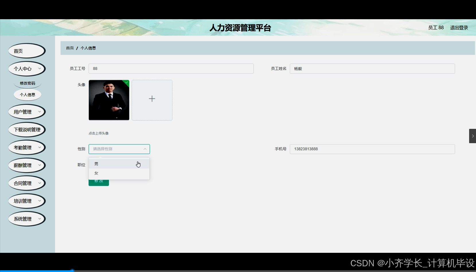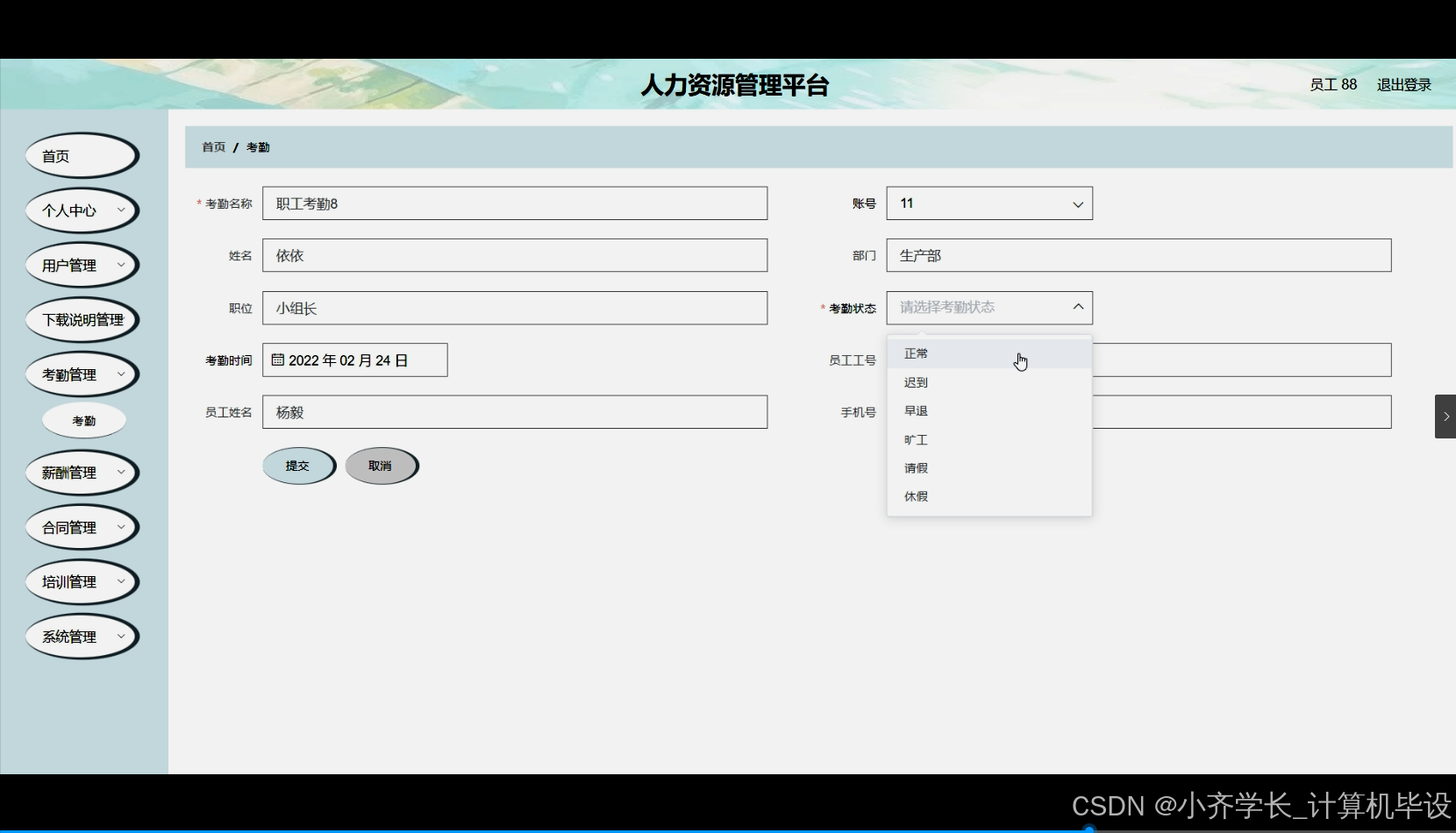 - 系统集成与兼容性:要整合用户、员工、部门、职位、考勤、薪酬、合同、培训等多个功能模块,确保系统的集成性和与企业现有系统的兼容性并非易事。