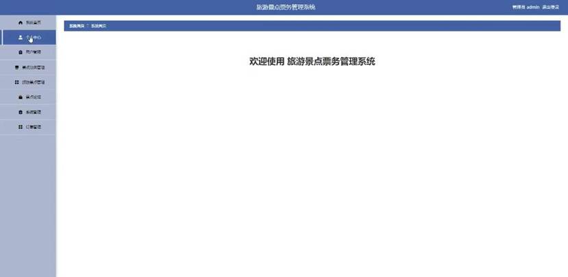 管理员进入主界面,主要功能包括对个人中心,用户管理,景点分类管理,旅游景点管理,景点论坛,系统管理,订单管理等进行操作。管理员主界面如图5-7所示: