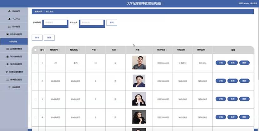 图5-8校队教练管理界面