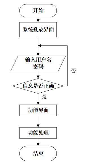 用户登录系统时需要输入正确的用户名和密码,数据库在进行匹配核实后匹配结果正确才能进入系统,若错误则提示用户名或密码错误,即无法登录。操作流程如图3-6所示。