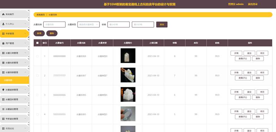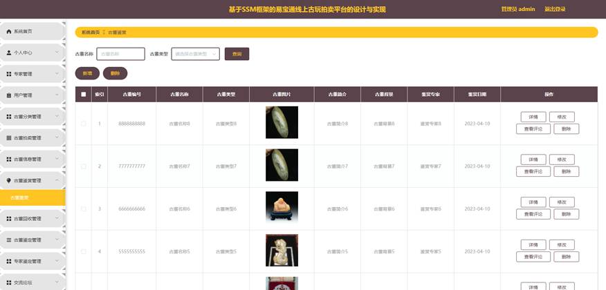 图5-16古董鉴赏管理界面