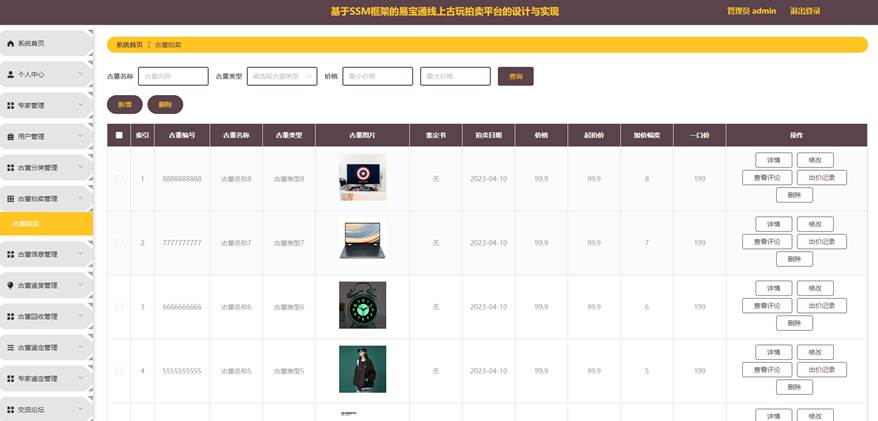 图5-14古董拍卖管理界面