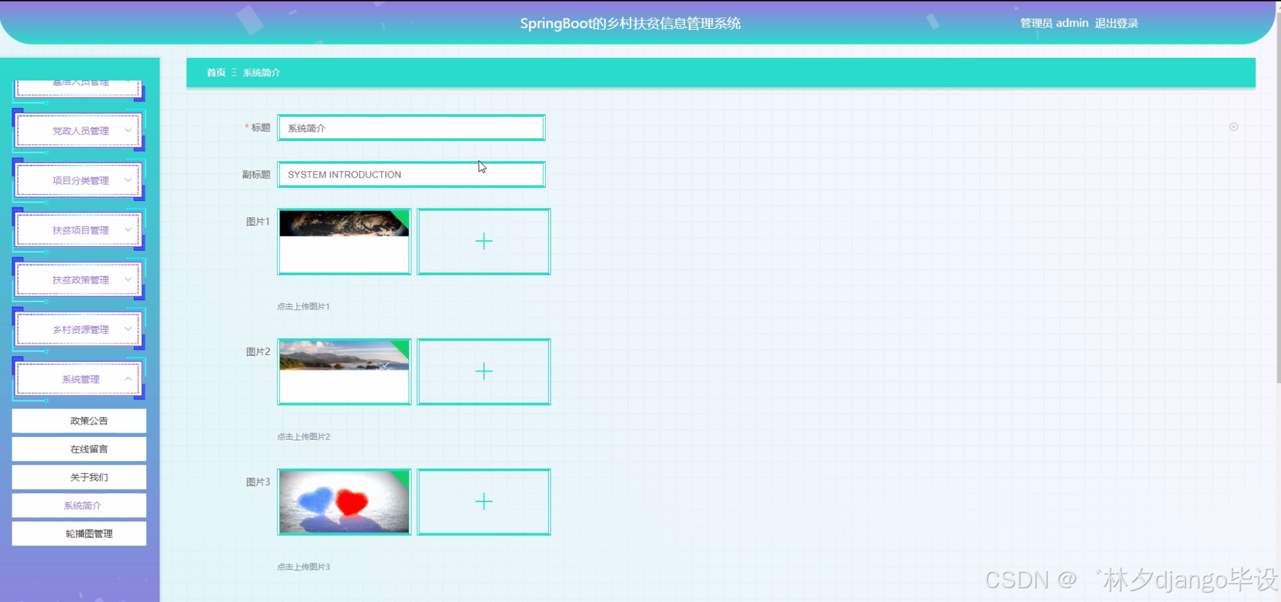 随着信息技术的飞速发展,乡村扶贫工作也逐渐朝着数字化、智能化方向发展。在国内外,关于扶贫系统的研究多集中在宏观政策层面或通用信息系统构建上。现有研究主要以整体的扶贫信息化框架为主,专门针对使用Python构建乡村扶贫系统的研究较少。尤其是针对扶贫工作中涉及的不同角色,如扶贫人员、基层人员、党政人员,以及不同的扶贫元素如项目分类、扶贫项目、扶贫政策、创新扶贫等方面的系统构建研究匮乏。因此本选题将以乡村扶贫为研究情景,重点分析和研究如何利用Python构建一个全面涵盖乡村扶贫各个要素和角色需求的系统,以期探寻提高乡村扶贫工作效率、精准度等的问题原因,提出构建高效乡村扶贫系统的对策建议,为后续更加深入的乡村扶贫数字化研究提供基础。这一研究能够深入挖掘乡村扶贫工作在信息化进程中的具体需求和解决方案,是具有研究价值的,目的在于为乡村扶贫工作提供更精准、高效的信息化支持。