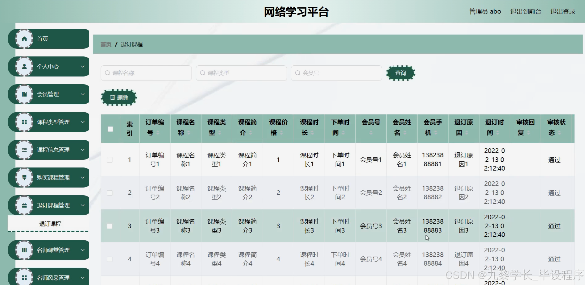 本研究将围绕网络学习平台的核心功能展开,具体包括会员管理系统的设计与实现,允许用户注册、登录、完善个人信息及享受会员特权;课程类型与课程信息系统的构建,提供多样化的课程分类和详细的课程信息介绍;购买与退订课程功能的实现,确保用户能够方便快捷地完成课程交易;名师课堂模块的打造,邀请知名教育专家进行在线授课,提升教学质量;以及名师风采展示区的设立,通过图文、视频等形式展示名师风采,增强平台的吸引力和影响力。通过这些功能的实现,构建一个功能完善、用户体验优良的网络学习平台。