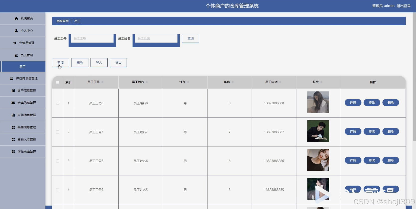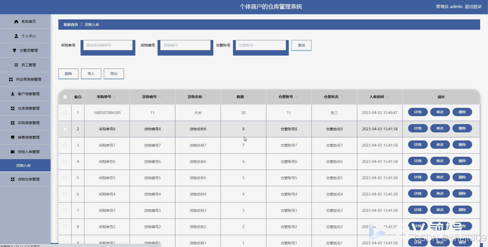 - 员工与仓管员管理:设定不同用户角色及其权限,确保系统操作的安全性与规范性。