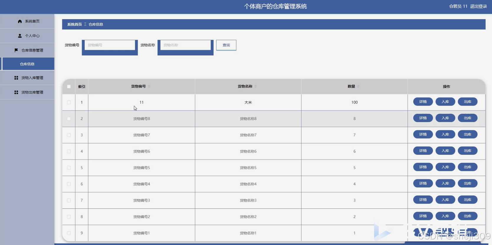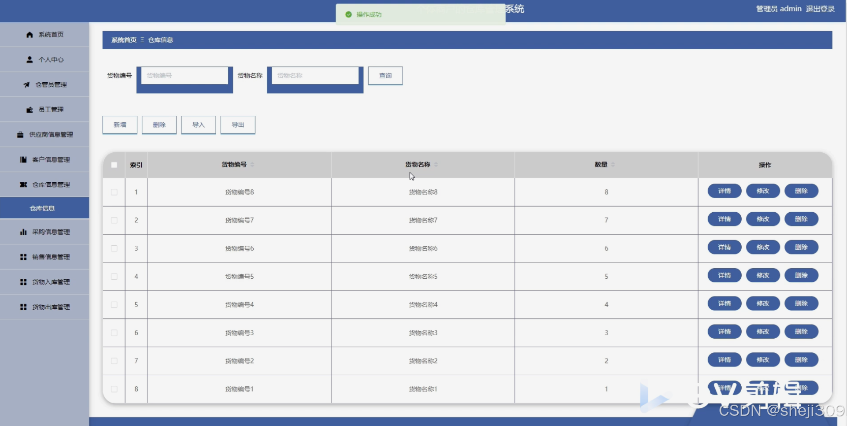 - 仓库信息管理:包括仓库位置、容量、布局等基本信息的管理,为货物存储提供基础数据支持。
