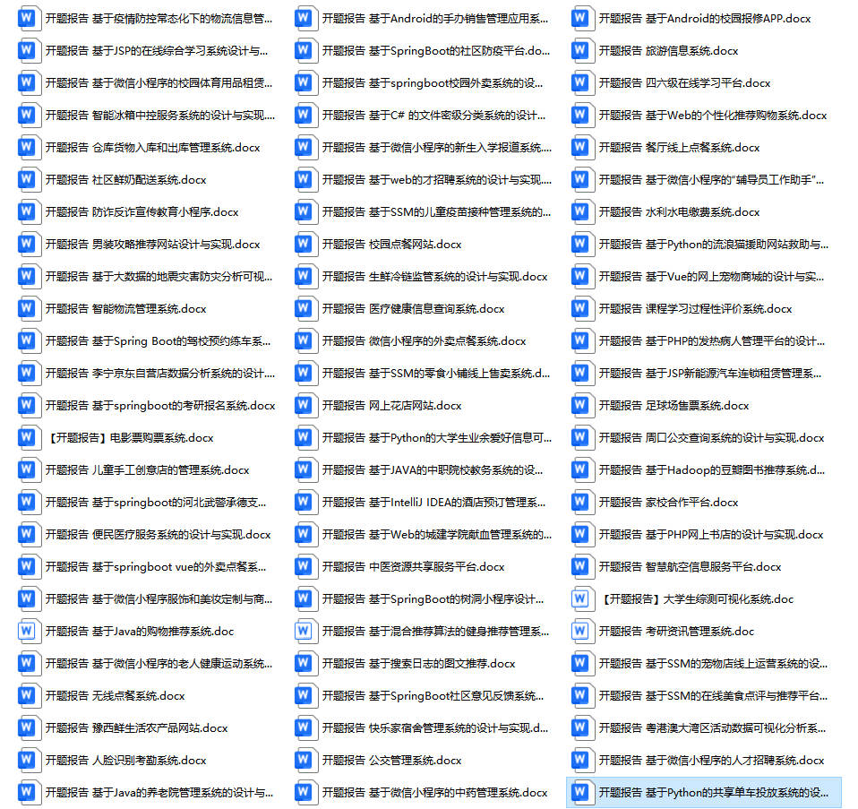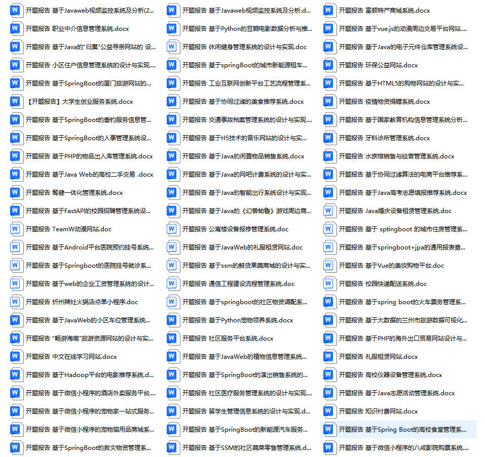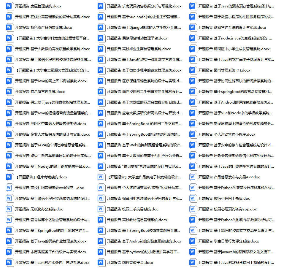 以上是某同学的毕业设计答辩的过程,如果你现在还没有参加答辩,还是开题阶段,已经选好了题目不知道怎么写开题报告,可以下面找找有没有自己符合自己题目的开题报告内容,列表中的开题报告都是往届真实的开题报告,可发送使用或参考。文末或底部来联xi可免费获取