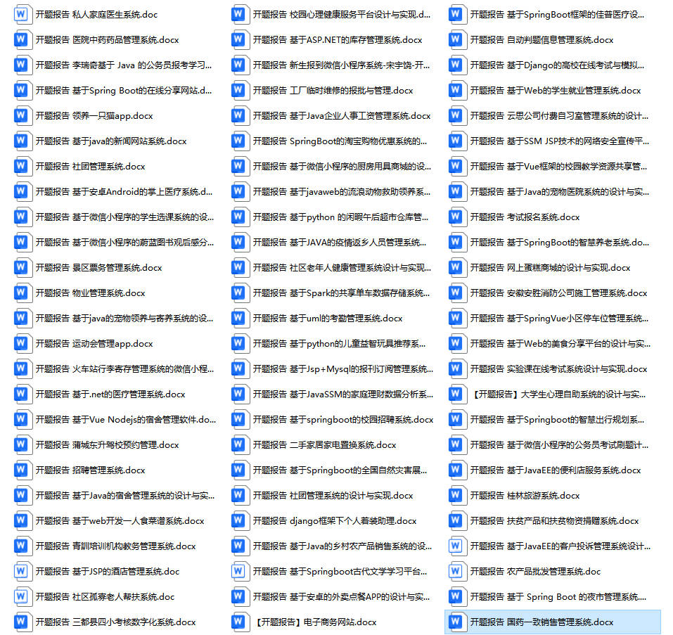以上是某同学的毕业设计答辩的过程,如果你现在还没有参加答辩,还是开题阶段,已经选好了题目不知道怎么写开题报告,可以下面找找有没有自己符合自己题目的开题报告内容,列表中的开题报告都是往届真实的开题报告,可发送使用或参考。文末或底部来联xi可免费获取