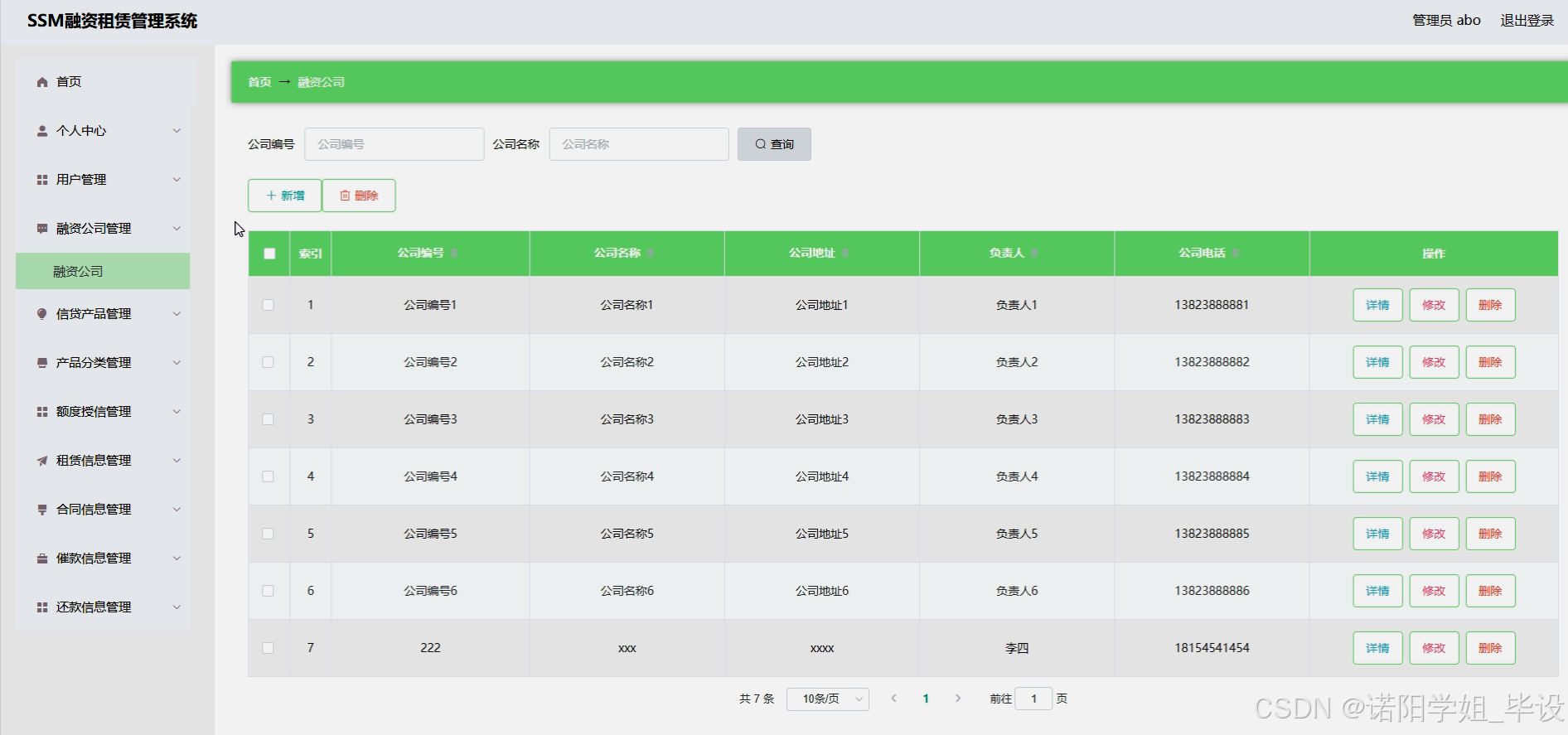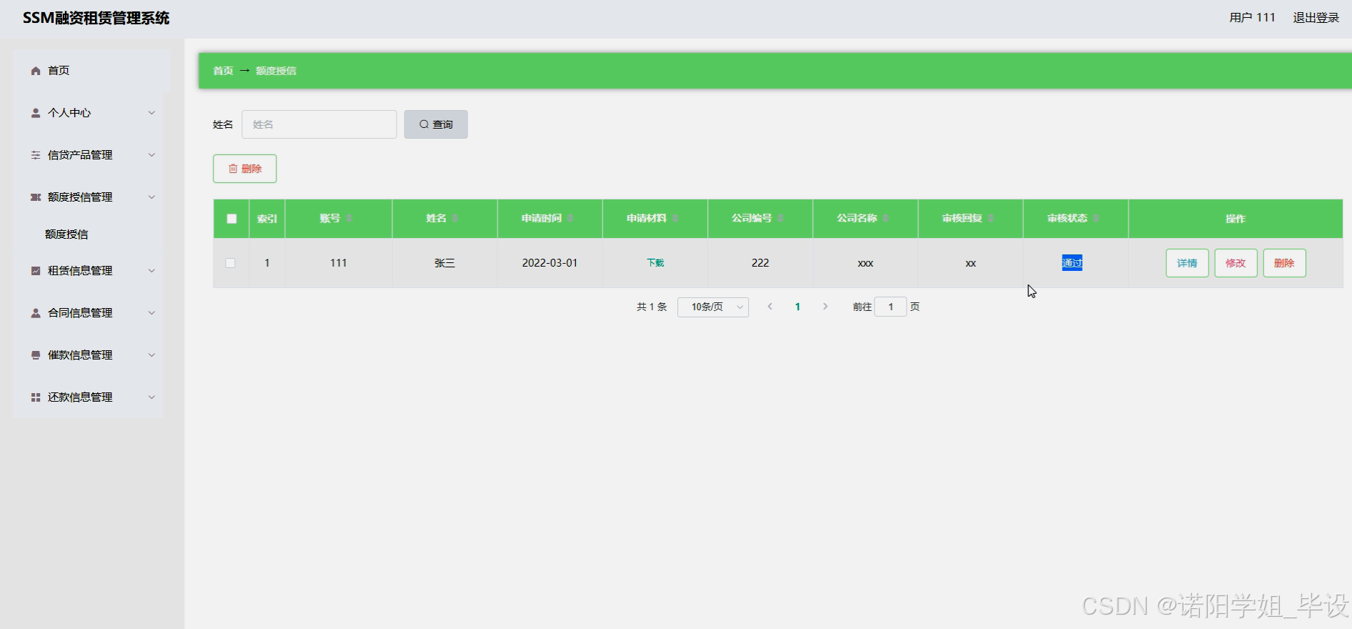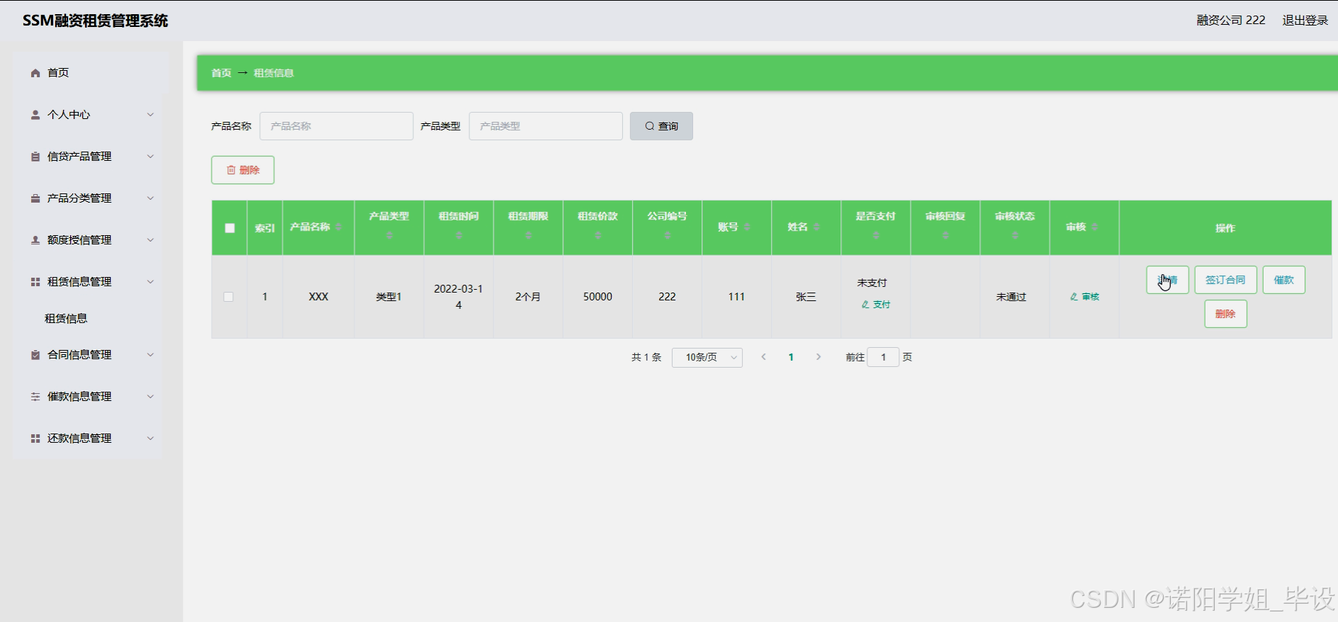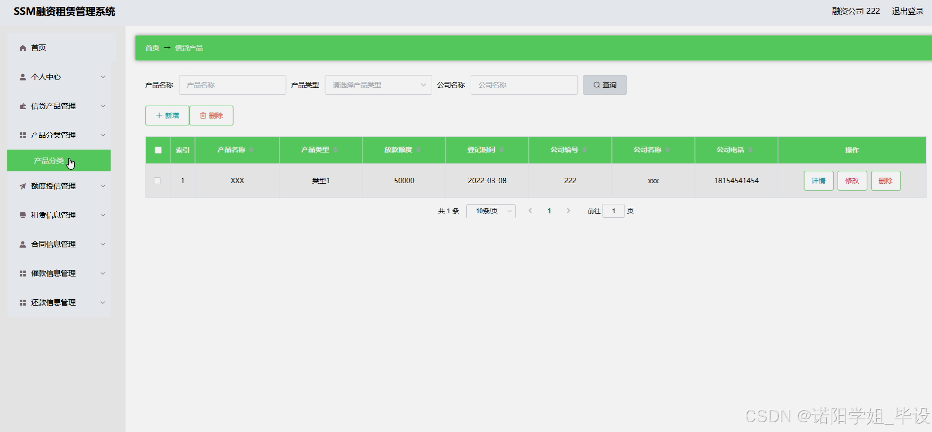 本研究内容围绕融资租赁管理系统的核心功能展开,包括用户管理、融资公司管理、信贷产品管理、产品分类管理、额度授信管理、租赁信息管理、合同信息管理、催款信息管理以及还款信息管理等多个模块。用户管理模块负责用户信息的录入、权限分配与身份验证;融资公司管理模块则关注公司的基本信息、信用评级与业务往来记录;信贷产品管理模块涉及产品的创建、修改与下架;产品分类管理模块实现产品的科学分类与快速检索;额度授信管理模块依据用户的信用状况与业务需求,提供智能化的授信决策;租赁信息管理模块记录租赁物的详细信息、租赁期限与租金支付计划;合同信息管理模块负责合同的起草、审核、签署与归档;催款信息管理模块针对逾期未还款项,自动发送催款通知并记录催款过程;还款信息管理模块则记录用户的还款记录与还款计划。通过这些模块的综合运用,系统能够实现对融资租赁业务全链条的精准管理与高效运作。