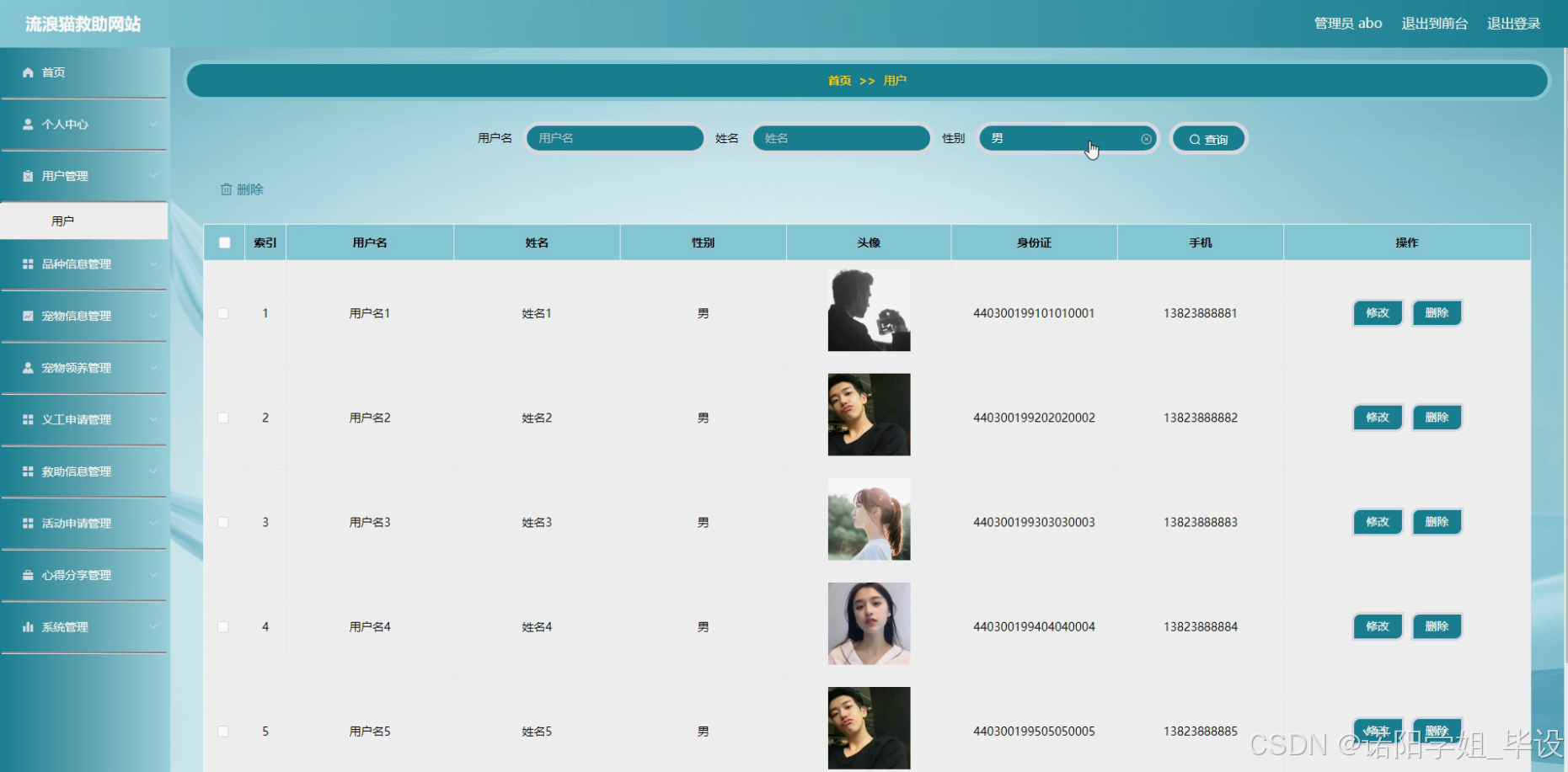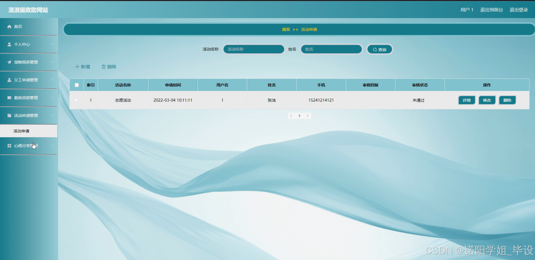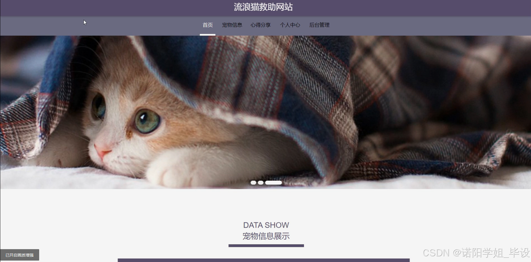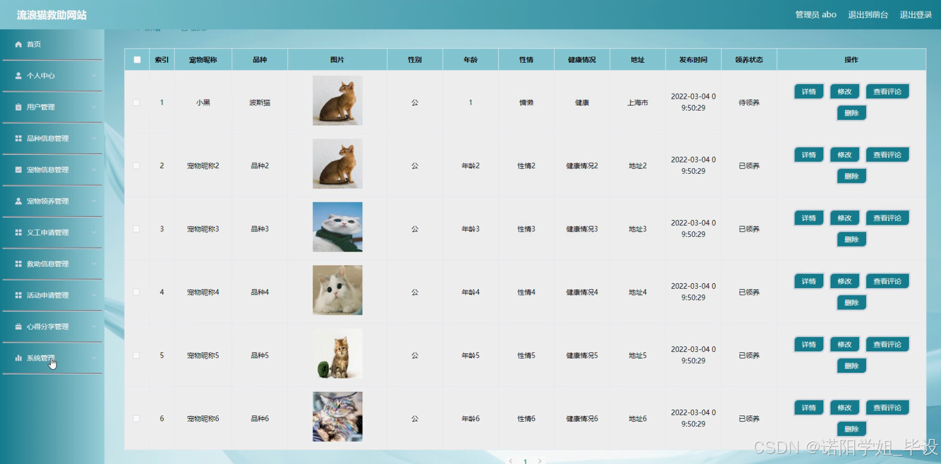 流浪猫救助网站的研究内容主要包括以下方面:首先,构建用户系统,实现用户注册、登录及个人信息管理等功能,确保用户信息的准确性和安全性。其次,整合品种信息与宠物信息,提供详细的流浪猫品种介绍及个体信息展示,便于用户了解并选择领养对象。同时,开发宠物领养系统,实现领养申请、审核及后续跟踪等功能,确保领养过程的规范与透明。此外,设计义工申请与救助信息系统,鼓励更多爱心人士参与救助活动,及时发布救助信息,提高救助效率。活动申请系统则用于组织线上线下的救助宣传活动,扩大影响力。心得分享系统则为用户提供交流救助经验、分享感动瞬间的平台,增强用户粘性。通过这些功能模块的协同工作,共同构建一个高效、便捷的流浪猫救助网站。