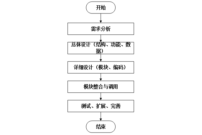 实时校车查询微信小程序开发时,首先对此系统进行需求分析,进而对系统进行模块、编码等详细设计总体的设计规划,设计系统功能模块,数据库的选择等,本系统的开发流程如图3-4所示