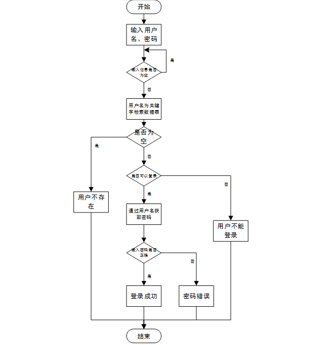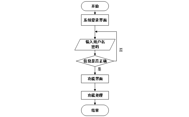 用户登录系统时需要输入正确的正确的用户名和密码,数据库在进行匹配核实后匹配结果正确才能进入系统,若错误则提示用户名或密码错误,即无法登录。操作流程如图3-6所示。